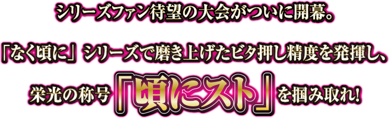 「なく頃に」シリーズで磨き上げたビタ押し精度を発揮し、「頃にスト」の称号を獲得するために競い合う競技と定義しています。<参加条件>